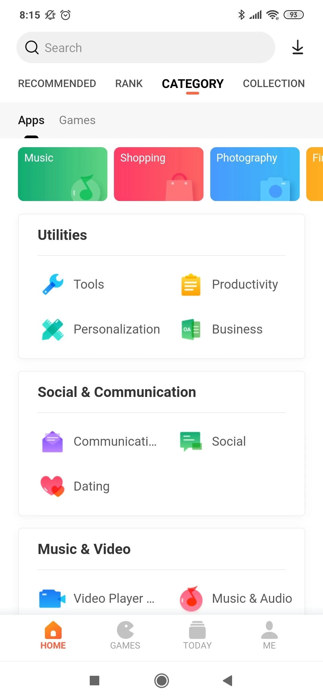 Starten Sie nach Abschluss der Installation die App und melden Sie sich bei Ihrem Konto an. Die Hauptseite mit stilvoller Benutzeroberfläche ist ansprechend und in Kategorien wie Kommunikation, Fotografie, Videospiele usw. unterteilt. Jede Kategorie umfasst eine Vielzahl von Apps, die nach ihrer Beliebtheit sortiert sind.